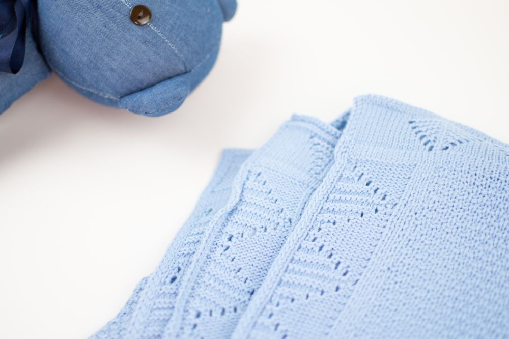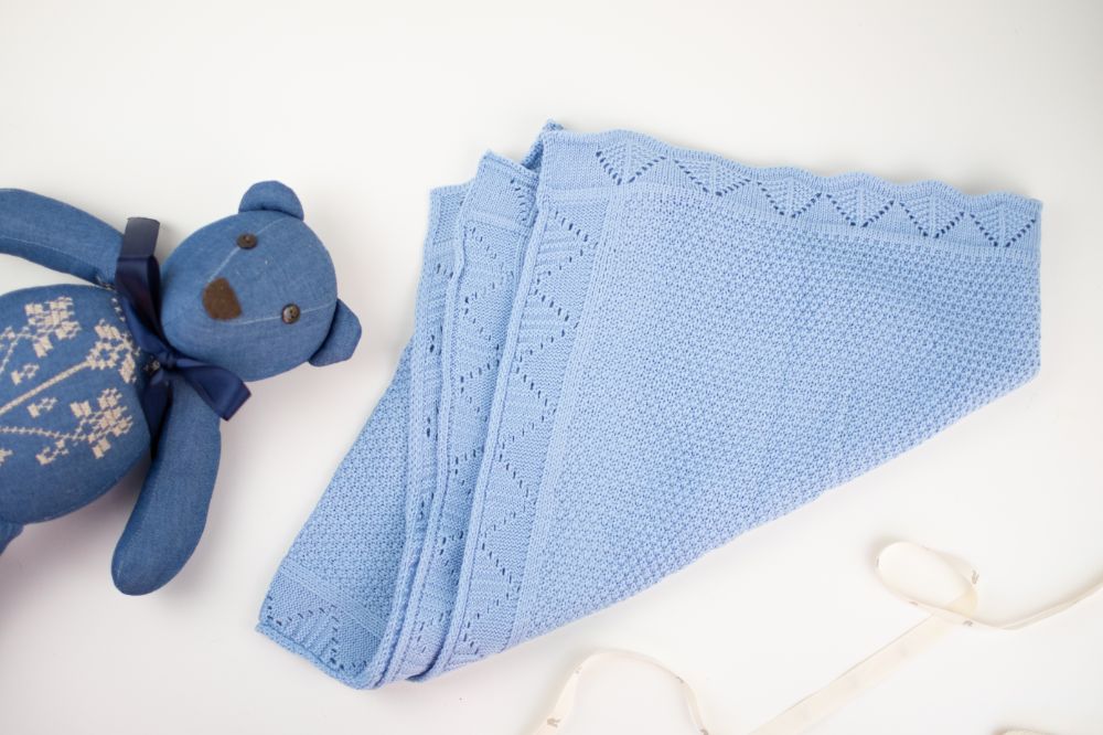 cobija borde calado azul ideal para entretiempo, de 97 x 75 cm