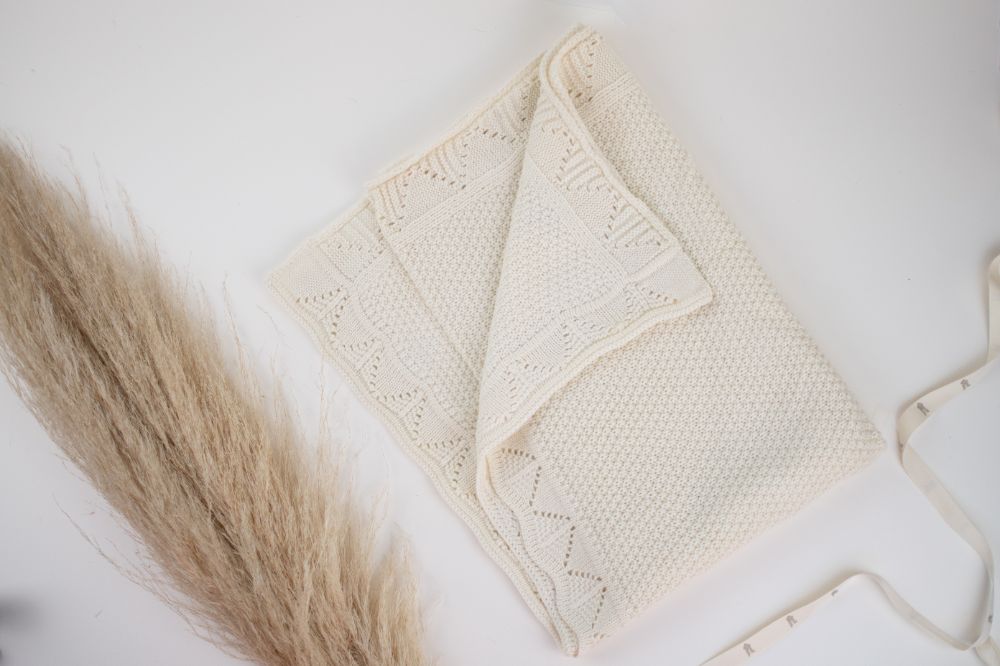 cobija borde calado hueso ideal para entretiempo, de 97 x 75 cm