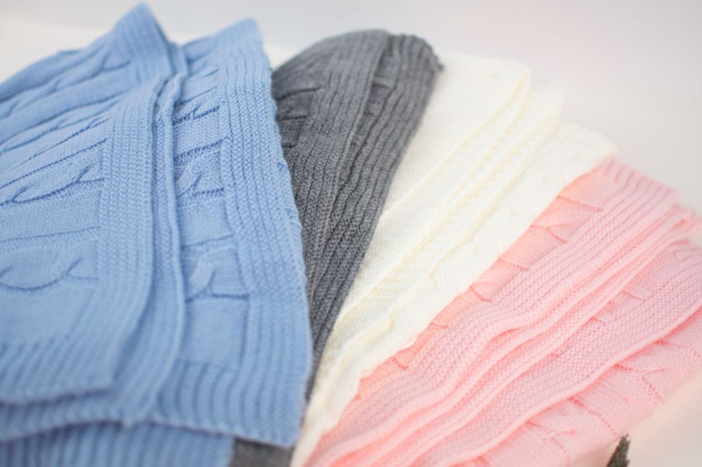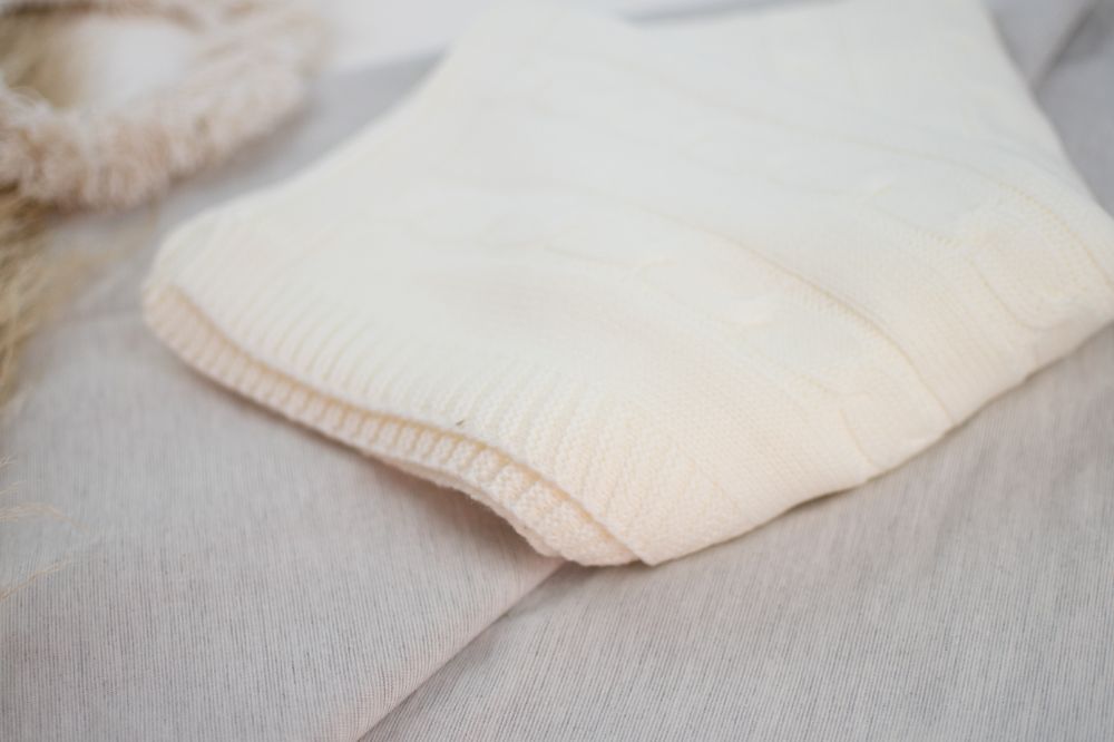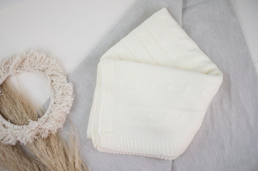 cobija de entretiempo trenzada color crema, de 95 x 80 cm