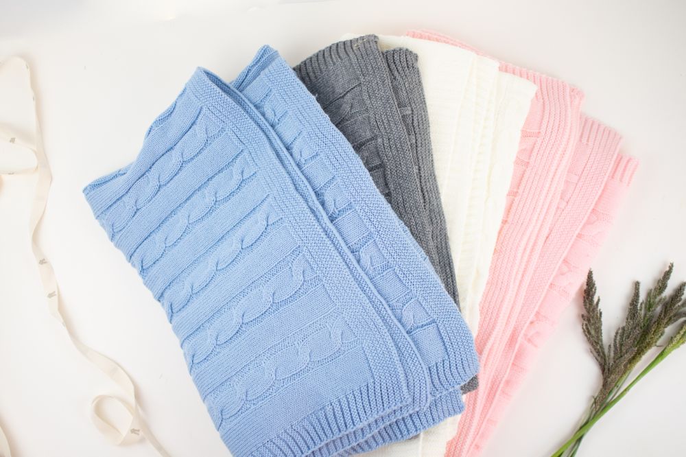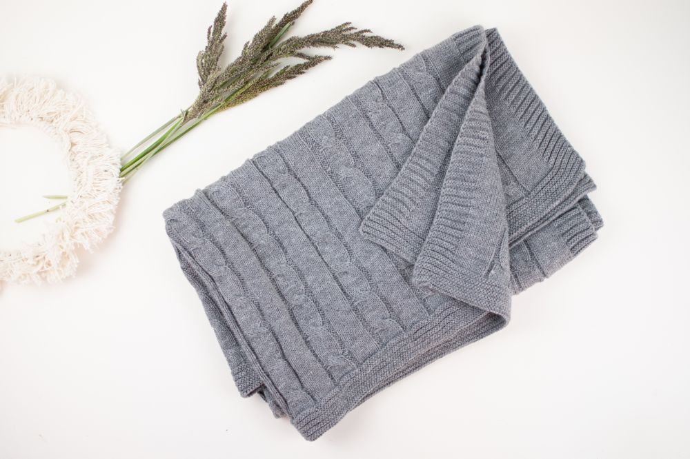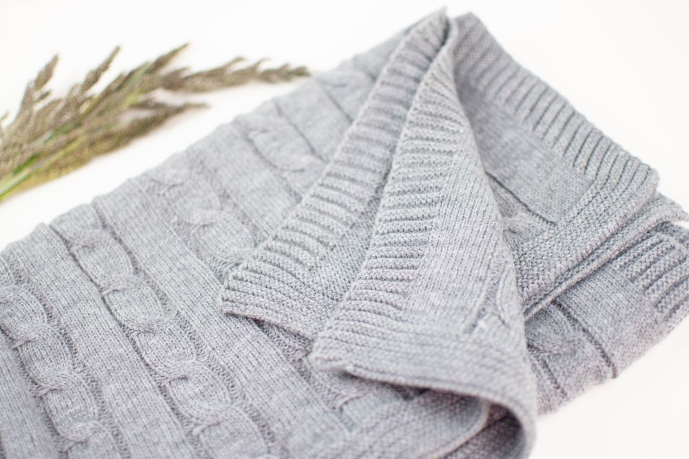 cobija de entretiempo trenzada color gris, de 95 x 80 cm