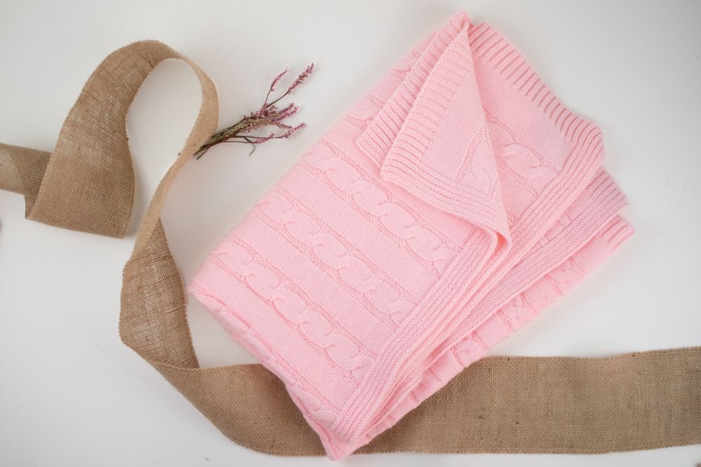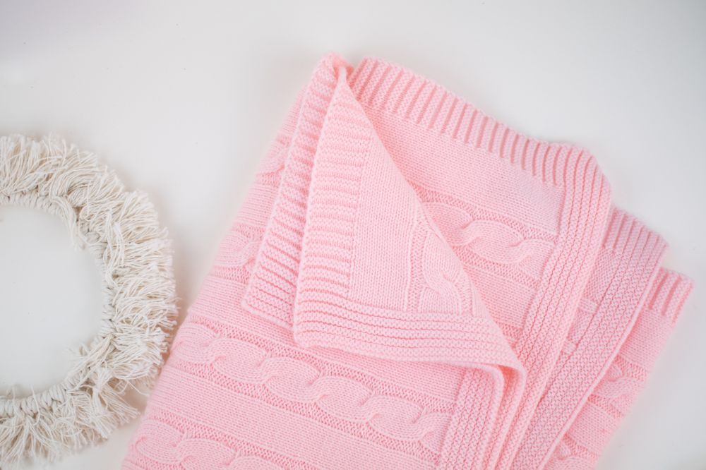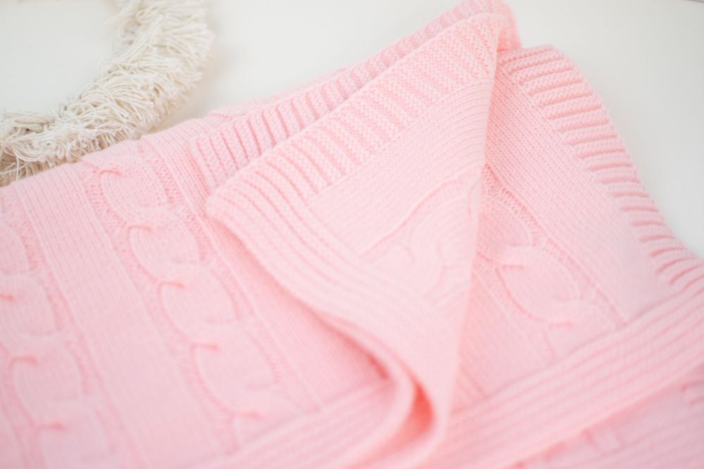 cobija de entretiempo trenzada color rosa, de 95 x 80 cm