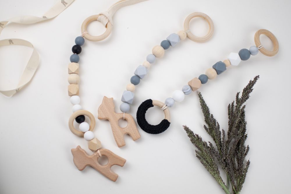 colgante para cuna, huevito o carriola. juguete y mordedera con distintas texturas y figuras (silicon libre de bpa y madera tratada con aceite de resino) que favorecen a la integracion sensorial, a la coordinacion ojo mano mediante el juego y ademas ayudan a tus chiquitines para que el proceso de denticion sea mucho mas llevadero y menos doloroso.