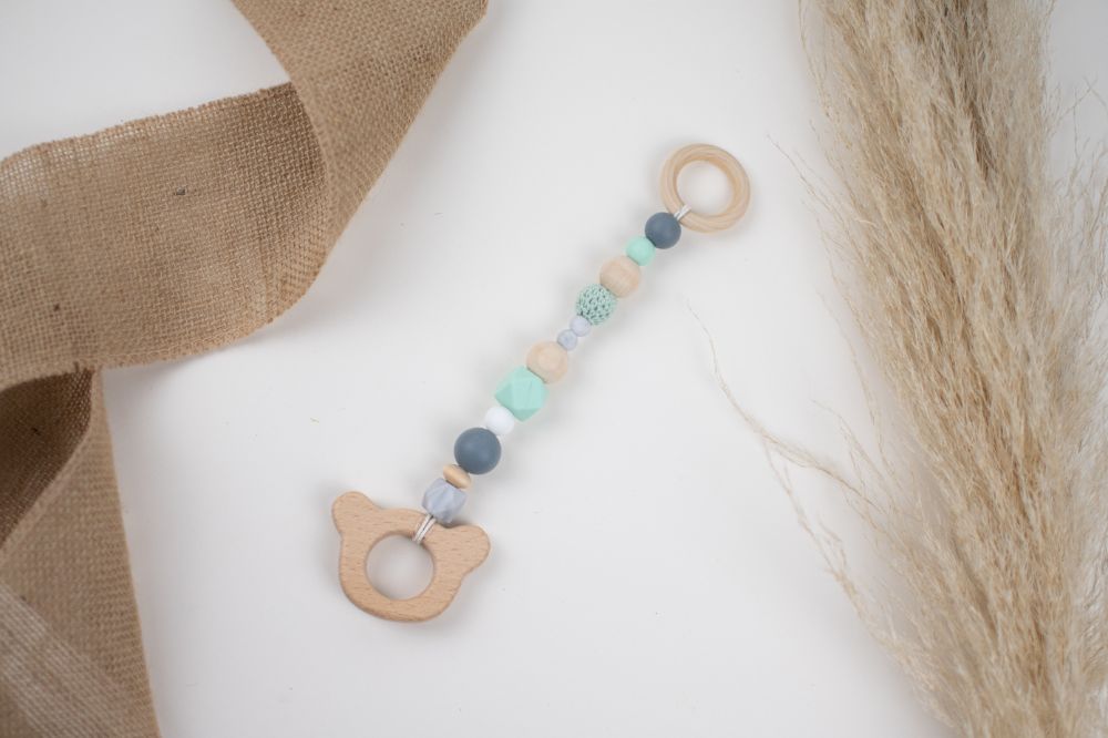 colgante para cuna, huevito o carriola. juguete y mordedera con distintas texturas y figuras (silicon libre de bpa y madera tratada con aceite de resino) que favorecen a la integracion sensorial, a la coordinacion ojo mano mediante el juego y ademas ayudan a tus chiquitines para que el proceso de denticion sea mucho mas llevadero y menos doloroso.