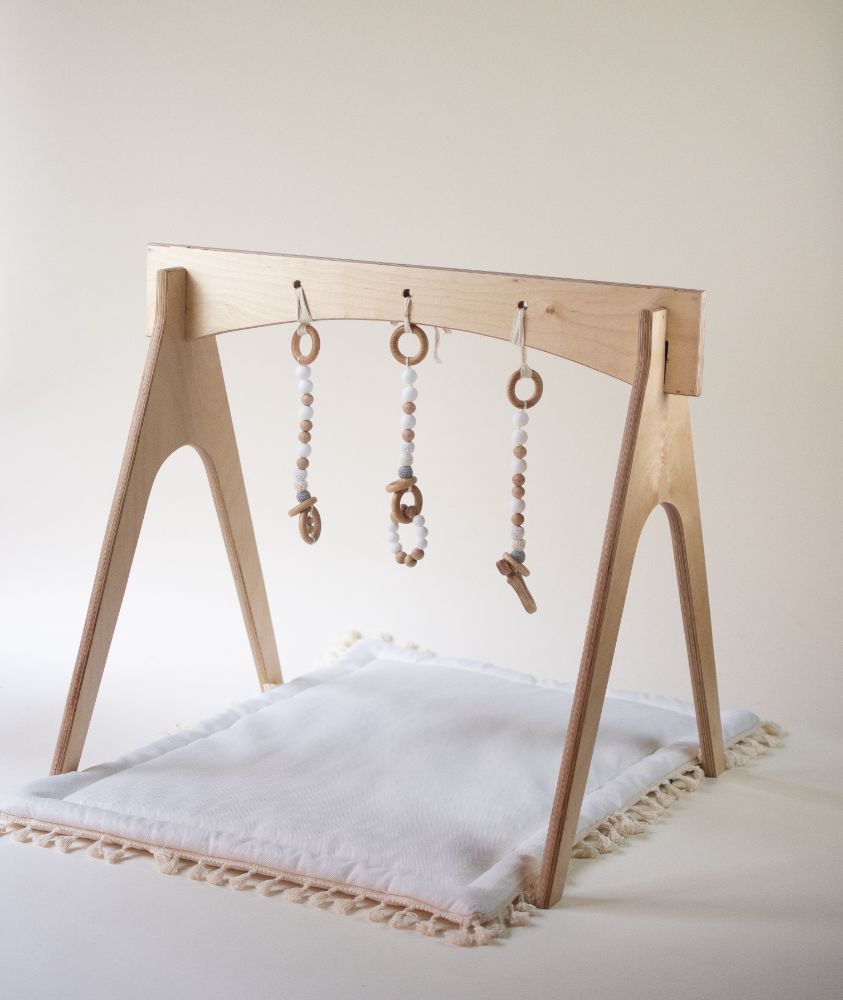 gimnasio de madera solida, con esquinas redondeadas de facil armado y desarmado ideal para guardar en cualquier lugar, fabricado en mexico con terminado blanco INCLUYE TAPETE Y UN SET DE COLGANTES DE TU ELECCION, QUE DEBES AGREGAR POR SEPARADO, al hacer checkout escribir codigo promocional SETGIMNASIO para generar el descuento correspondiente y descontarlos del total