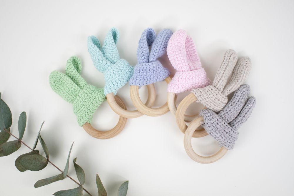 oreja crochet tejida. ayuda a la denticion abriendo las encias con sus diferentes texturas 100% aptas para los bebes. madera tratada con aceite de resino y tejido de 100% algodon. ademas las diferentes texturas ayudan a la integracion sensorial contribuyendo asi al desarrollo neurologico de tu bebe. con tu compra ayudas a mamas de ninos con capacidades especiales a tener un trabajo y desarrollo personal, asi como mejorar la economia de sus familias.