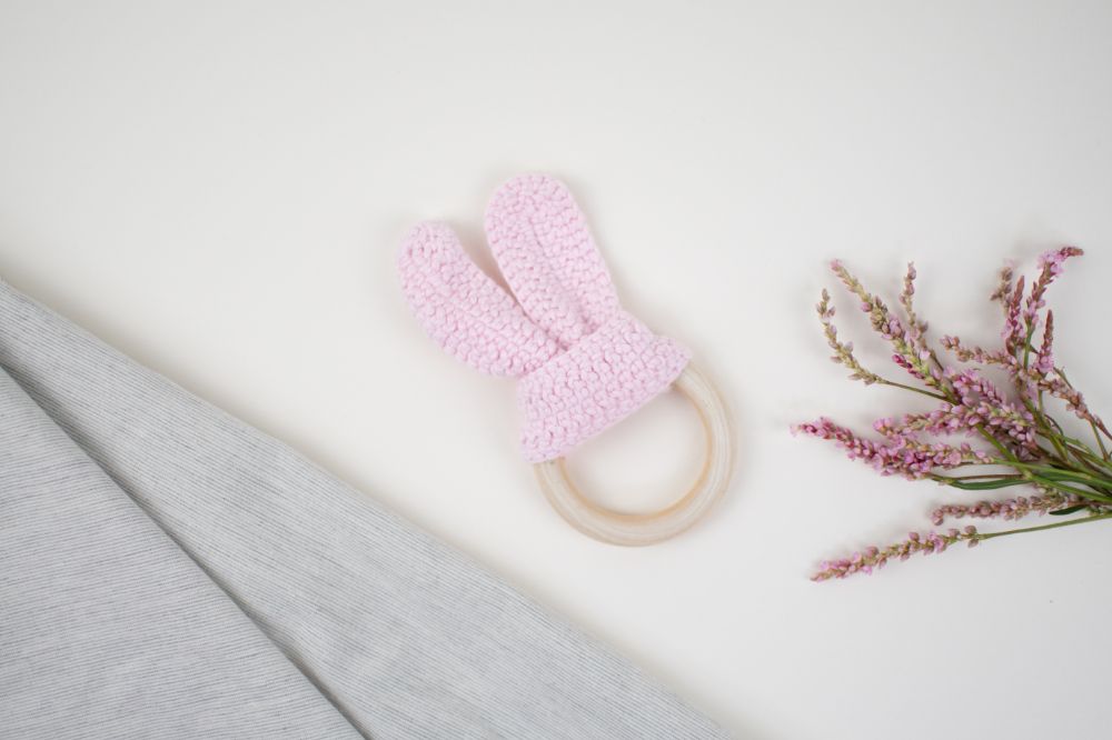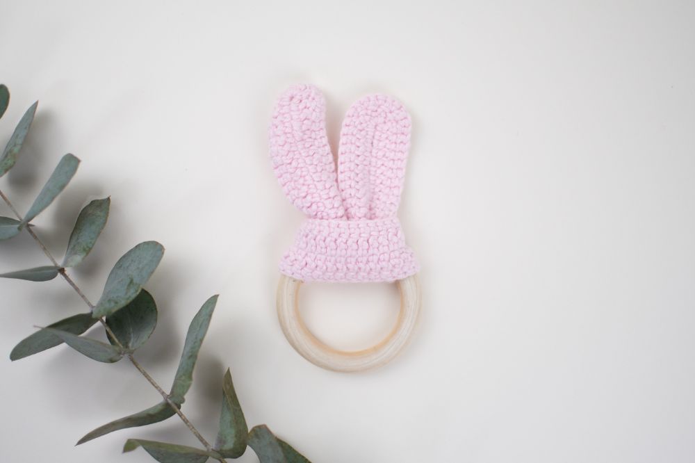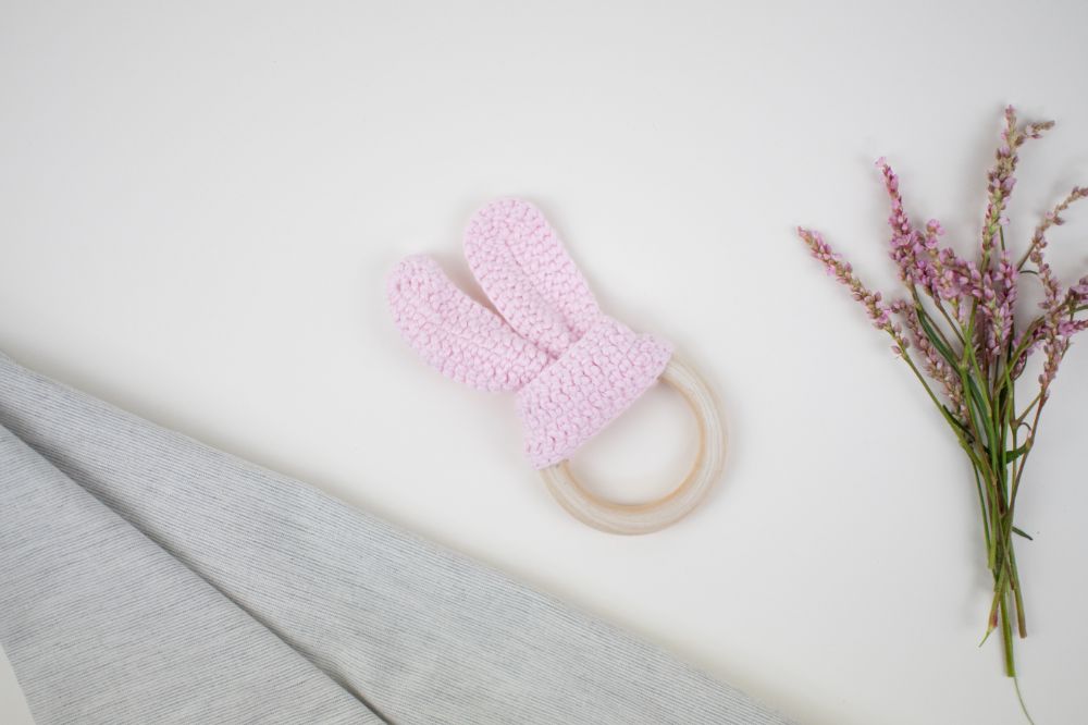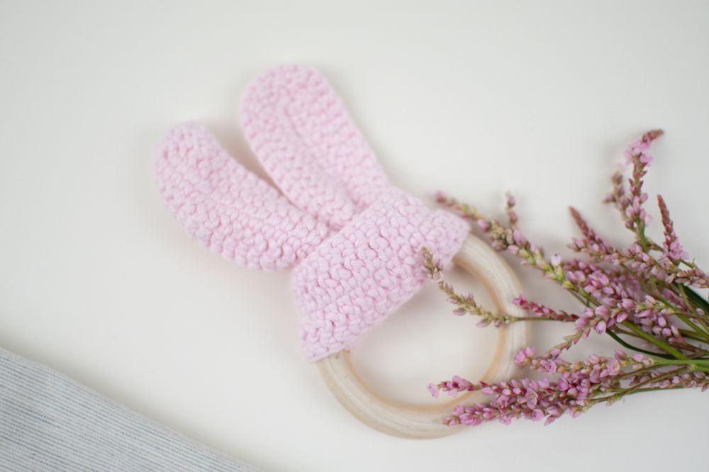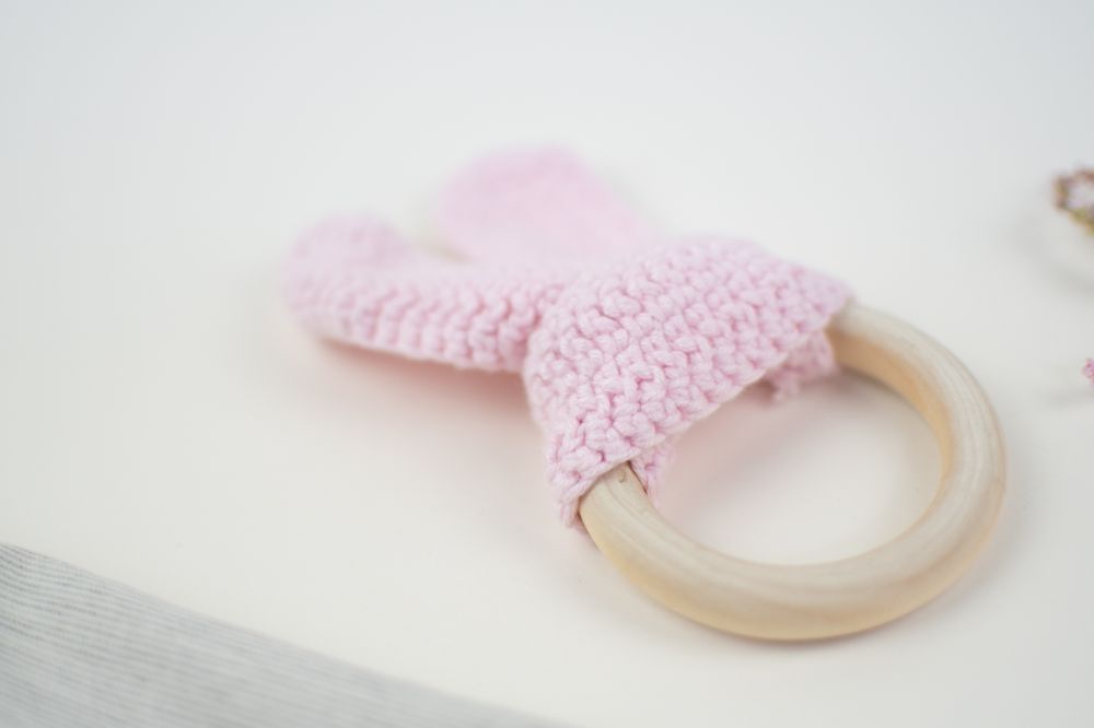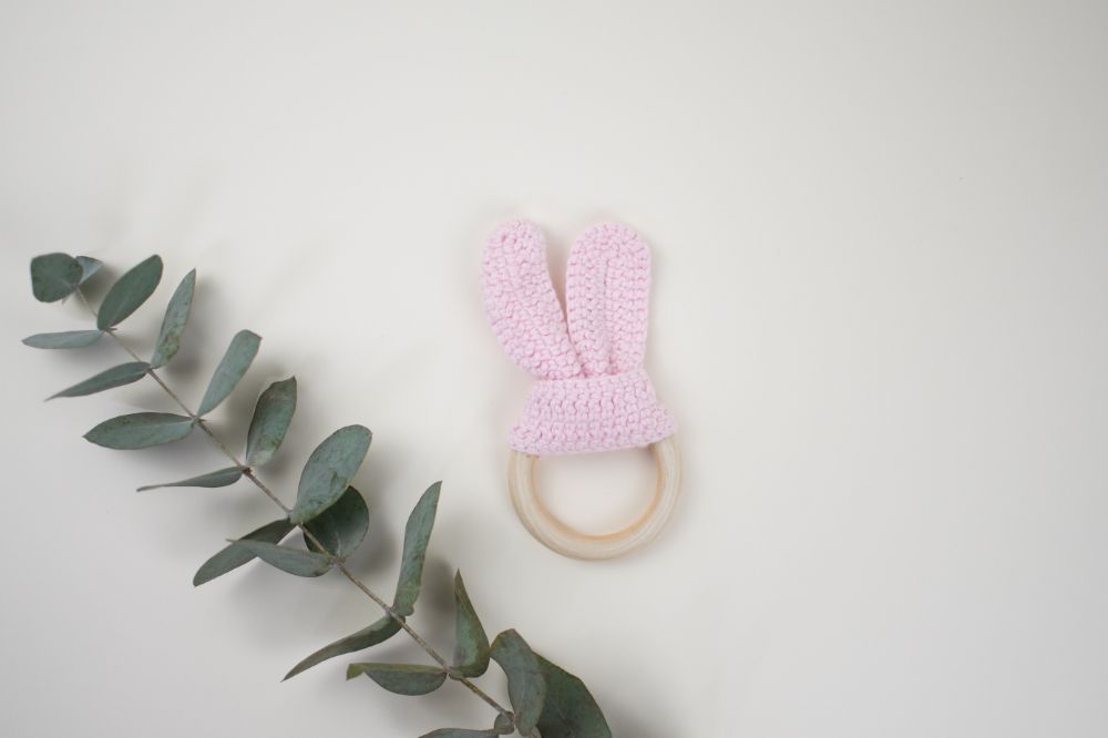 mordedera oreja crochet rosa bebe